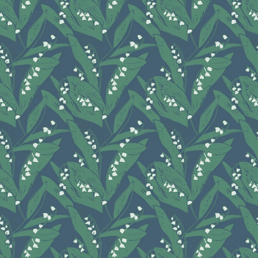 This vibrant pattern transports you to spring, the glorious floral design depicts an abundance of Lily of the Valley in full bloom.