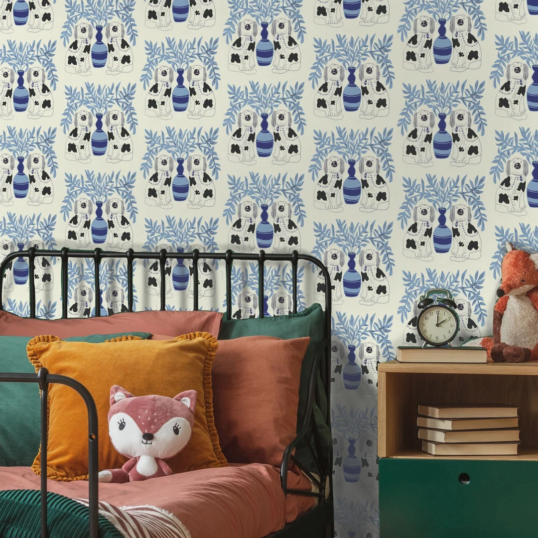 Wallpaper is a fantastic way to inject a sense of fun into your home. I have always loved the Staffordshire dog figurines, since first noticing the sweet pair sitting atop my Nan’s fireplace when I was a child.Â