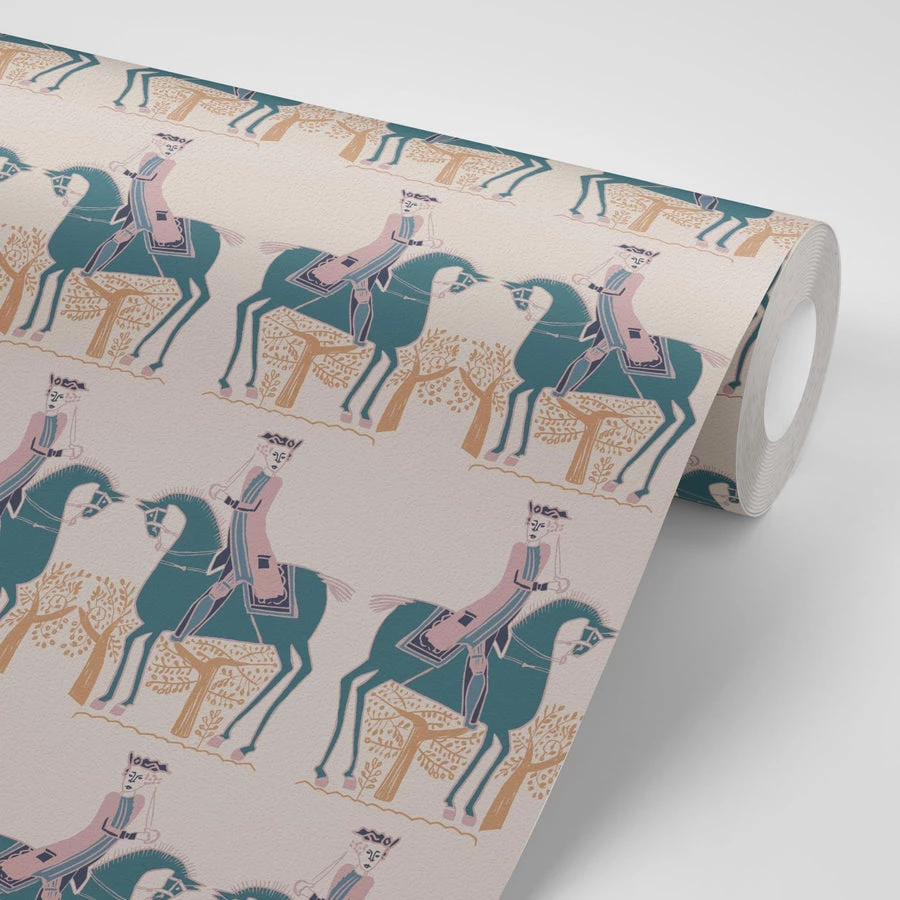 Red Coat was inspired by a drawing from 1770 of a redcoat soldier and has been reworked here to embody all the young adventurers who dream of exploring the world, and preferably on horseback. This wallpaper will encourage stories, tall tales, imagination, and adventure.