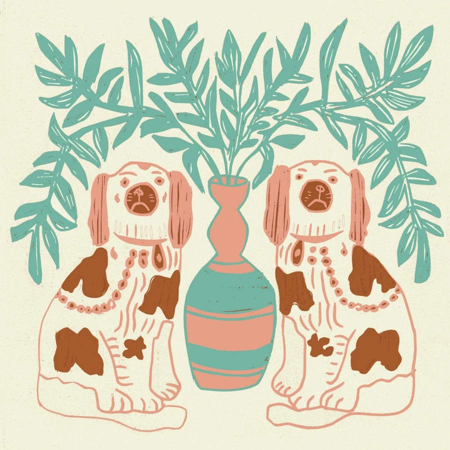 Add some joy to your home with the Pair of Dogs print. I have always loved the Staffordshire dog figurines, since first noticing the sweet pair sitting atop my Nan’s fireplace when I was a child.Â