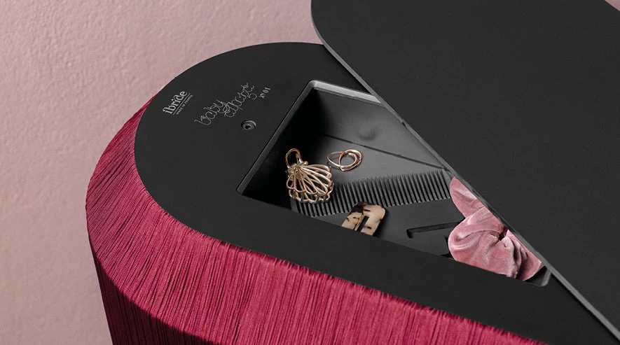 From the very day of his birth, Baby Alpaga is already endowed with long, silky fleece. The only thing he asks for is to snuggle up against a sofa or to sit at your bedside. His elegant coat gives him the appearance of a miniature standing boudoir, behind which objects and secrets can be discreetly sheltered. The alter ego of intimacy, he reveals his mysteries only to those who have tamed him.