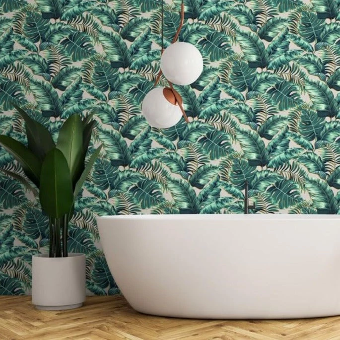 Banana leaves is a bold scale wallpaper. It is an inspiring hand drawn piece of art with a variety of leaves that are large, wide, elongated, and slightly rounded. The surface of the leaves is easy on the eye as they appear waxy, flexible, and glossy. Although the colours are generally lime, olive green to dark green, here Brand McKenzie have designed alternative colours that sit comfortably within many home environments. Available in Black &White, Leaf Green, Blush Pink