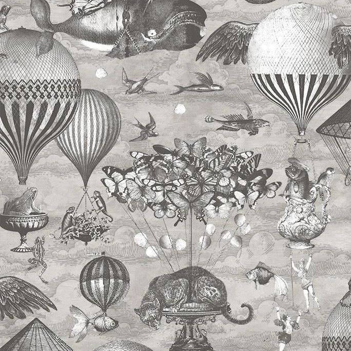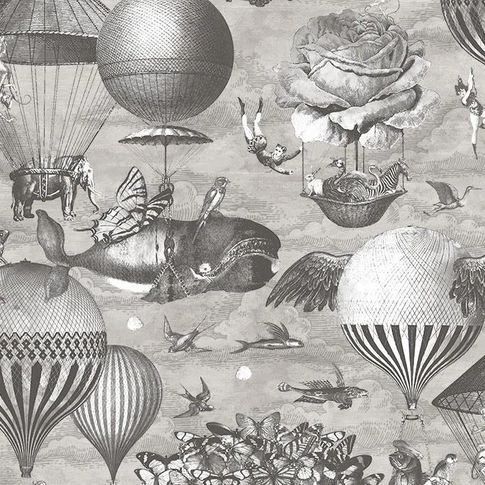 Up in the Skies it’s a curious world with flying balloons, animals and people all floating harmoniously, where fantasy becomes reality in a kaleidoscope world full of hopes, dreams and possibilities. Brand McKenzie with curious skies take you to a place where anything is possible. Available in three colour options.