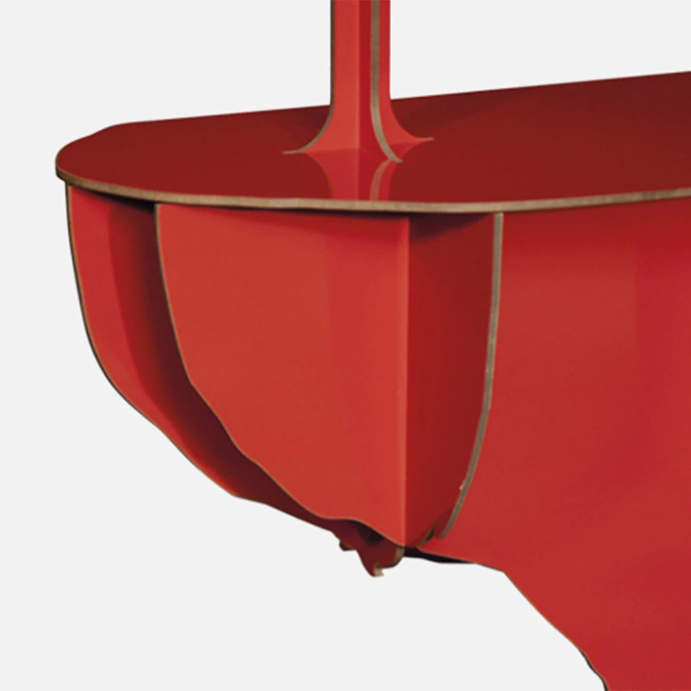 Equipped with a lamp and designed to be mounted on a wall, the illuminated, decorative and practical console table creates a surprising effect and asserts her dynamic femininity within the interiors she visits. Â