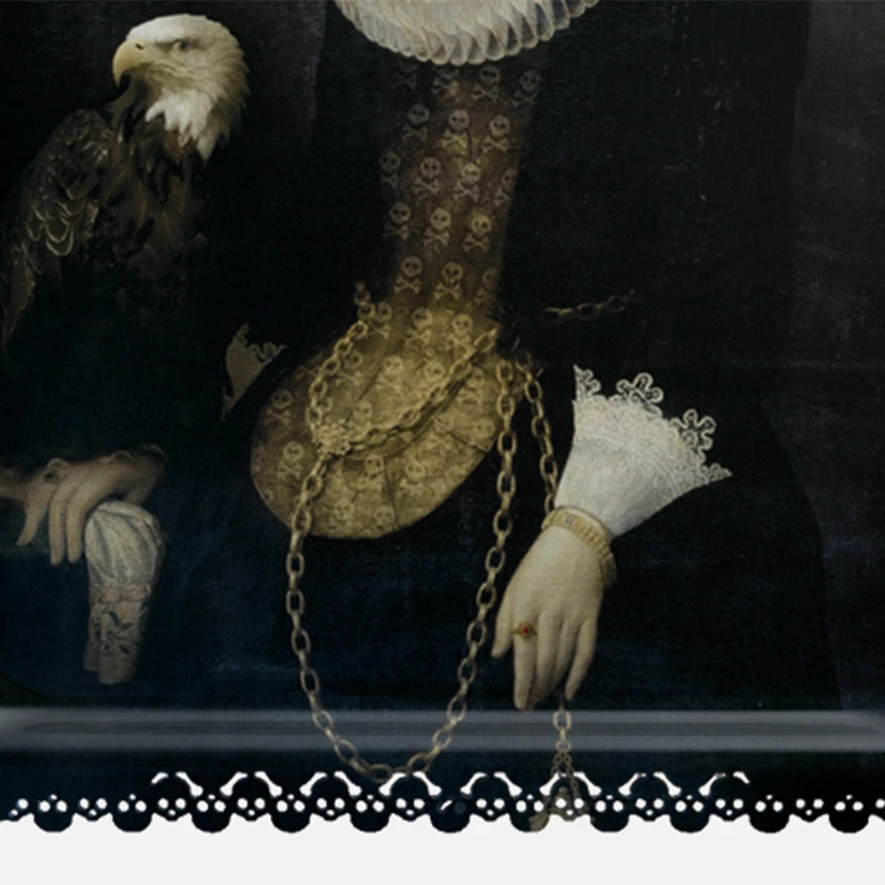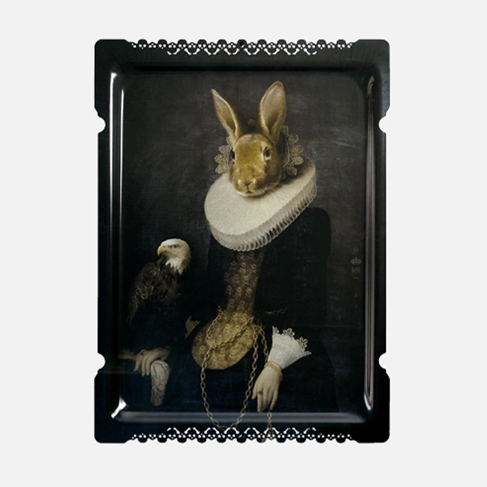 The largest size of the a trays to be used to serve the guests, they can then be displayed freely on a wall as a pictorial work, a mythological painting.