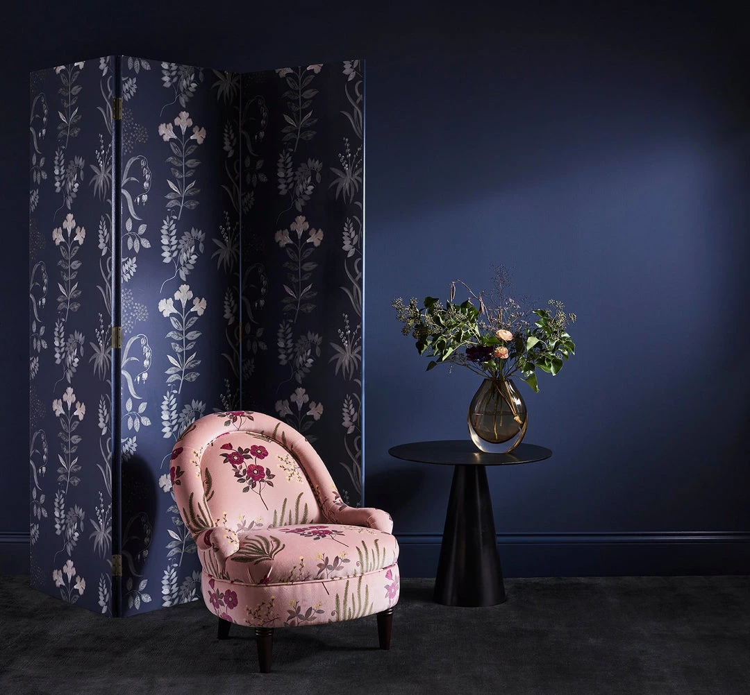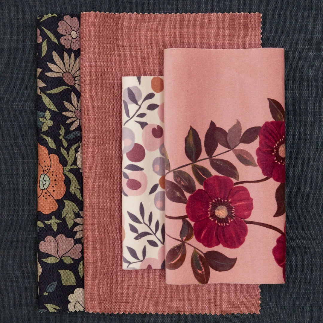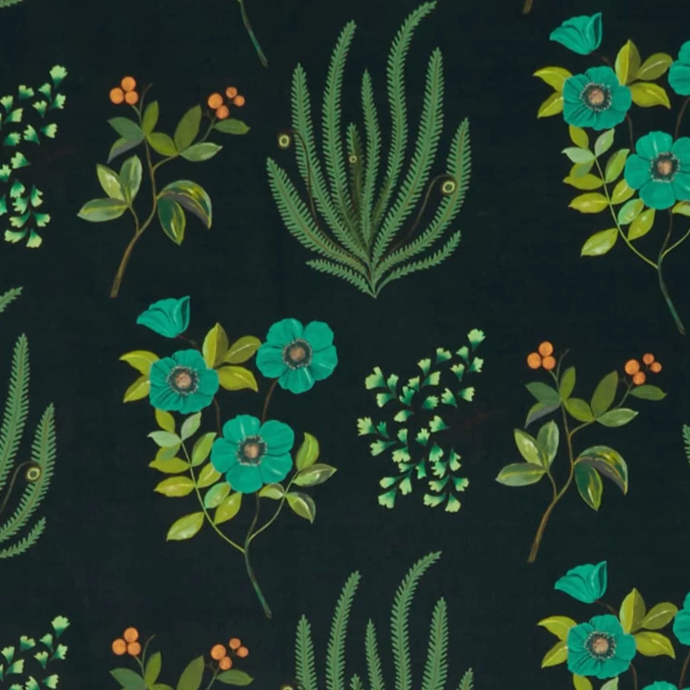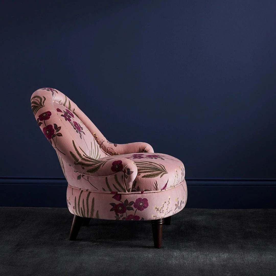 Hand-painted in the Liberty design studio, Botanical Flora is a hero artwork of the Floribunda story, celebrating the historic tradition of botanical illustration in Britain – featuring elegantly trailing flora such as dicentra spectabilis (bleeding heart) and lily-of-the-valley. Botanical Flora appears on cotton velvet, bringing to life the soft painterly nature of the motifs.