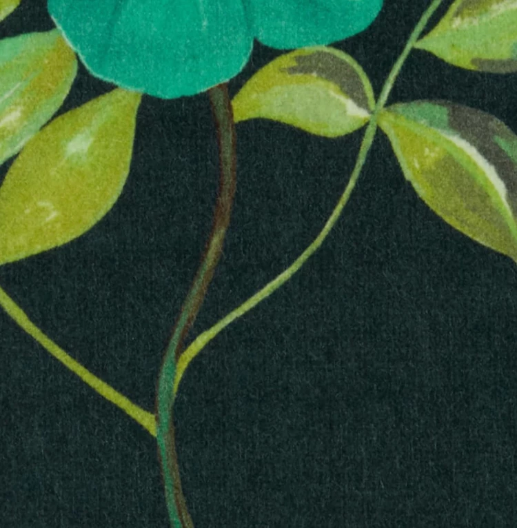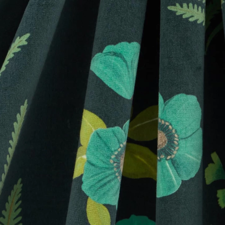 The design is expertly printed in Italy onto our Wellington Velvet – a beautiful high-percentage cotton velvet containing a small amount of modal fibre for softness and drape. Designed for residential interiors, this velvet has a decadent feel and a high abrasion that is also suitable for contract use. Luxurious in feel and vibrant in colour, Wellington Velvet’s elegant drape makes it ideal for heavier curtains with blackout or draft-excluding qualities.