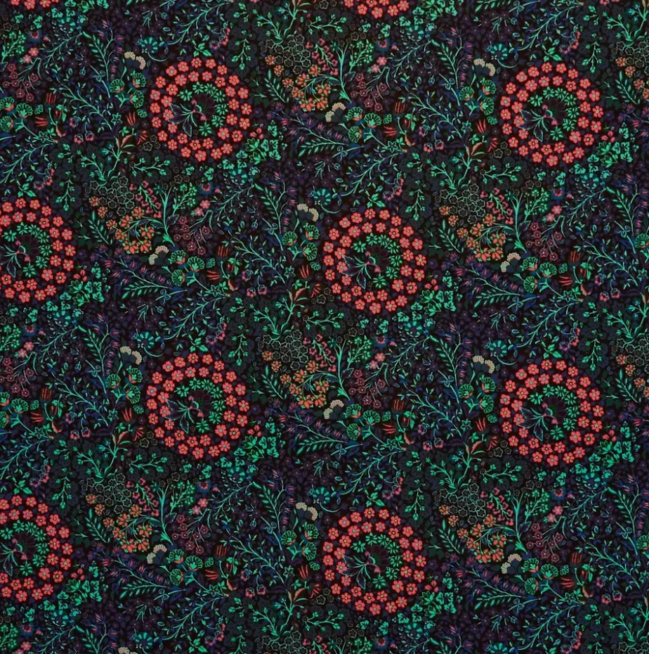 Marquess Garden is inspired by an intricate floral shawl design from the Liberty archive, dating from 1977 in a heavily patterned Arts and Crafts revival style. The design is expertly printed in Italy onto our cotton velvet – the perfect base for rich, saturated tones and bright colours, with a robust structure and exceptional abrasion rating that’s well-suited for high-traffic contract use. Its elegant drape also makes it ideal for heavier curtains with blackout or draft-excluding qualities.