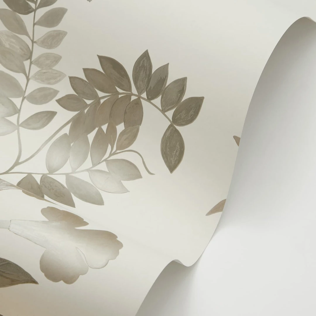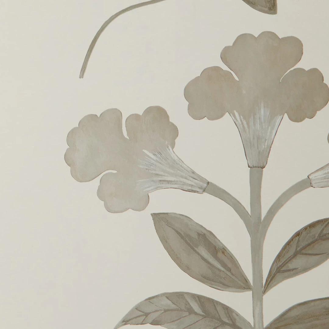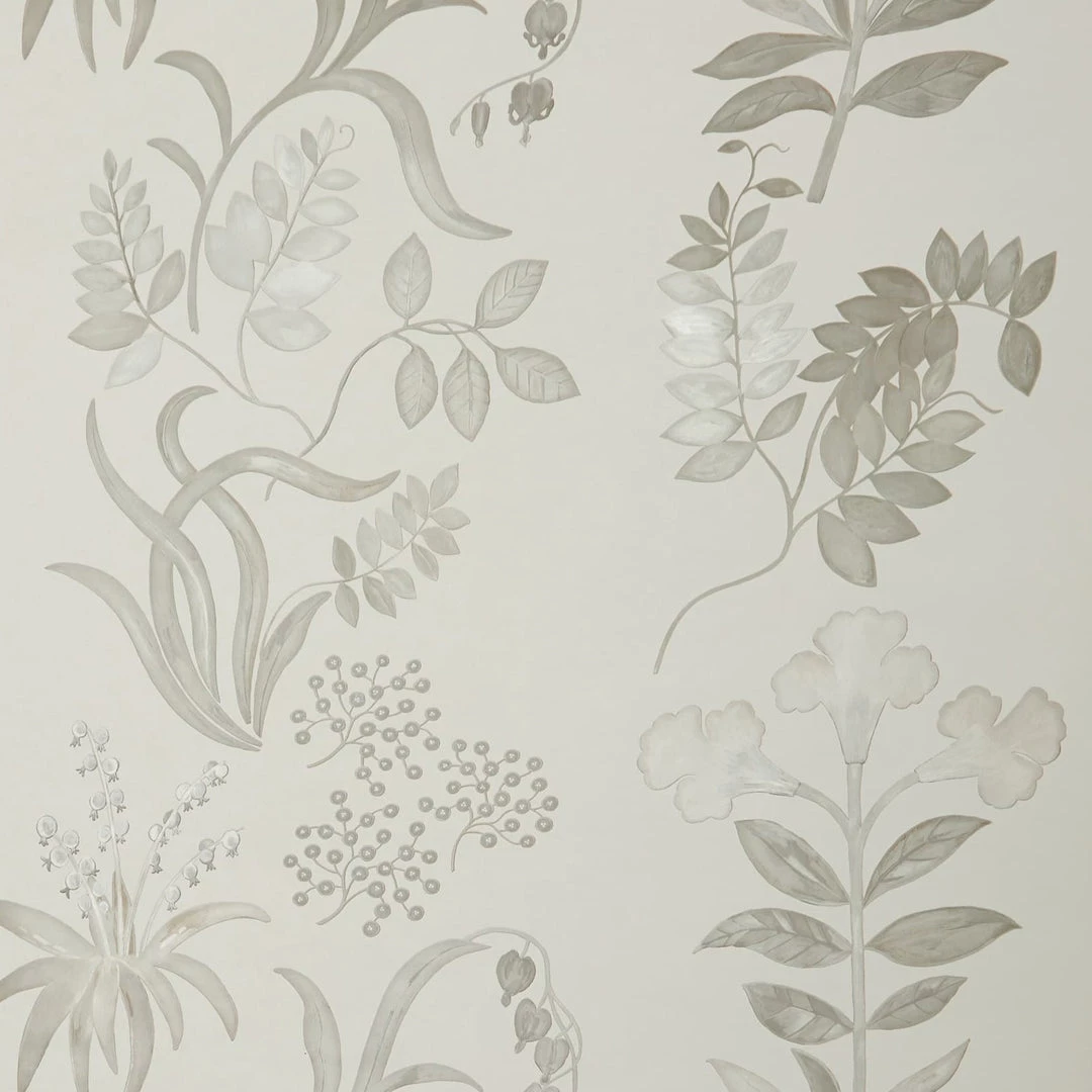 Hand-painted in the Liberty design studio, Botanical Stripe is a signature artwork of the Floribunda collection, celebrating the historic tradition of botanical illustration in Britain. Botanical Stripe is printed using a fine mesh gravure technique, bringing to life the soft painterly nature of the motifs. Matte and metallic pigments are layered in varied degrees of tonality to create a subtle luminescence, reminiscent of Victorian cyanotypes.