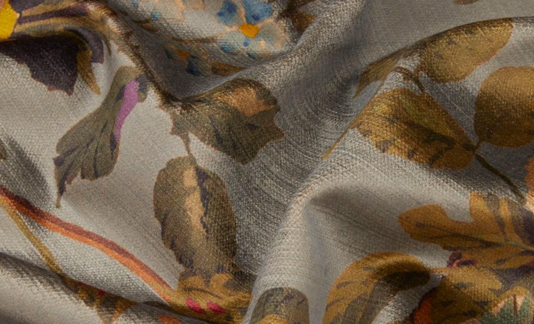 Lady Kristina was created from a series of exquisitely hand-painted artworks from the 1920s and ’30s. The reimagined version, Lady Kristina Rose, features a newly formed repeating layout. It is expertly printed in Italy onto our Vintage Velvet – a beautiful mixed-fibre base that’s suitable for both heavy domestic and contract use. Luxurious in feel and vibrant in colour, this velvet’s elegant drape also makes it ideal for heavier curtains with blackout or draft-excluding qualities.