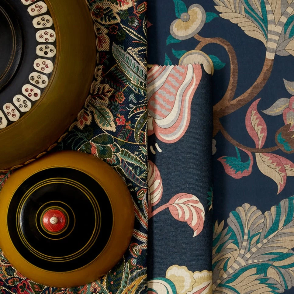 Taken from an antique Tree of Life design within the Liberty archive, Palampore Trail has historically appeared as a best-selling scarf design. Here it is reworked into a simpler layout, to enhance the striking floral motifs. Printed on a beautiful iridescent non-woven ground, the design shines with subtle mineral-like lustre and richness – reminiscent of the exquisite plant and insect dyes which originally inspired the design.