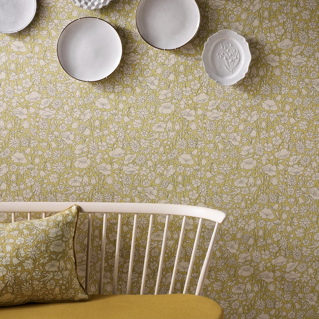 Poppy Meadow is a one-colour version of Poppy Meadowfield, a reworking of a much-loved archival print from 1910. Developed as a contemporary all-over floral wallpaper design using soft contemporary coloured grounds, the fine outlines and plains of solid colour mark this as an instantly recognizable Liberty floral. Design details are captured using a rotary printing technique, softly emulating the screen-printed look of the original.
