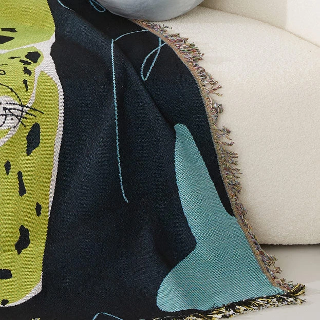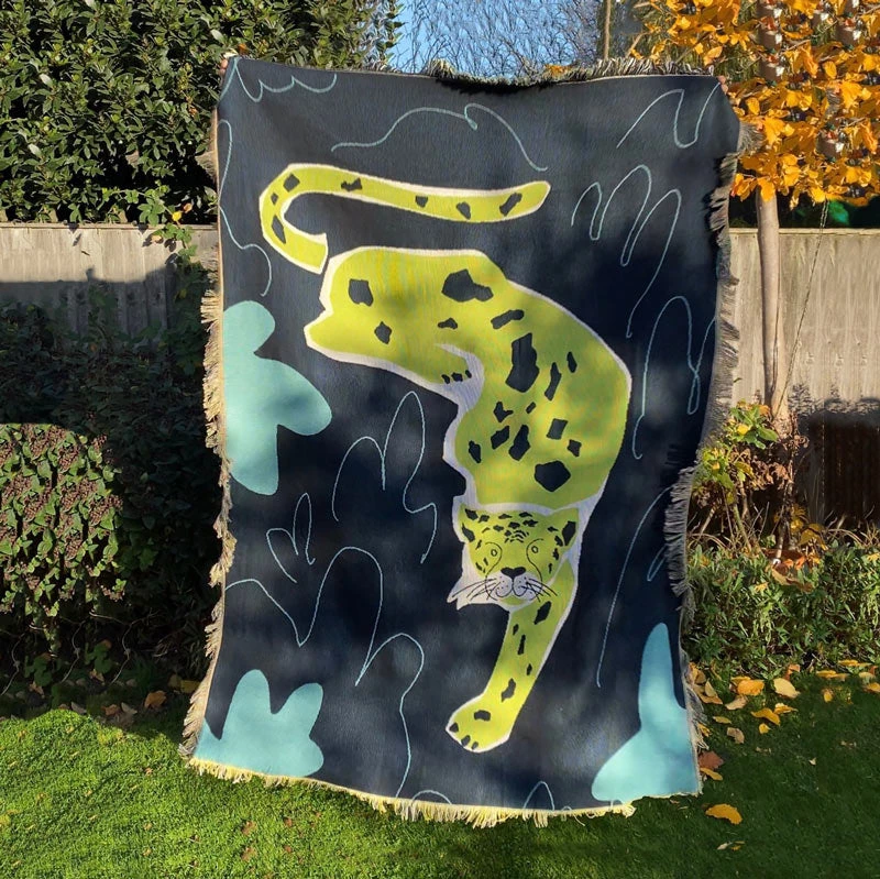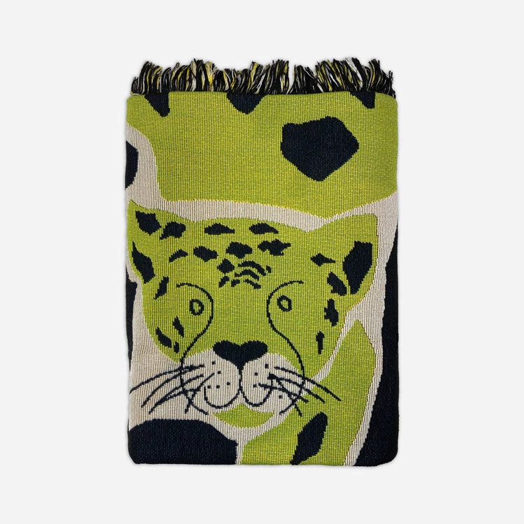 Presenting the Leo throw. Stray’s latest release featuring a curious green leopard. Child friendly.