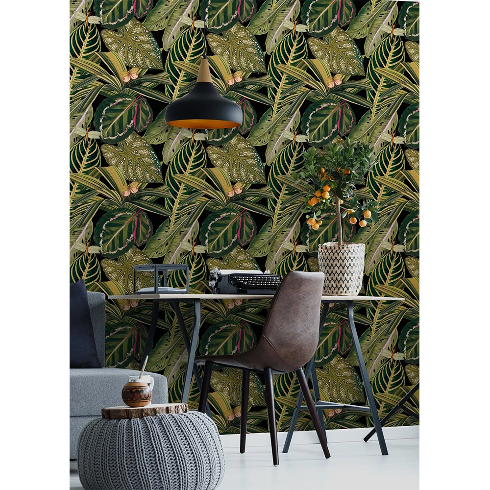 Get lost in the depths of the Amazon Jungle with the Amazonia wallpaper from Mind The Gap. Large, oversized fresh green leaves fill the space with pops of pretty pink creating an impressive statement in any room. It is easy to put up with the paste the wall application and will enhance any room whether it is one wall or all.Â