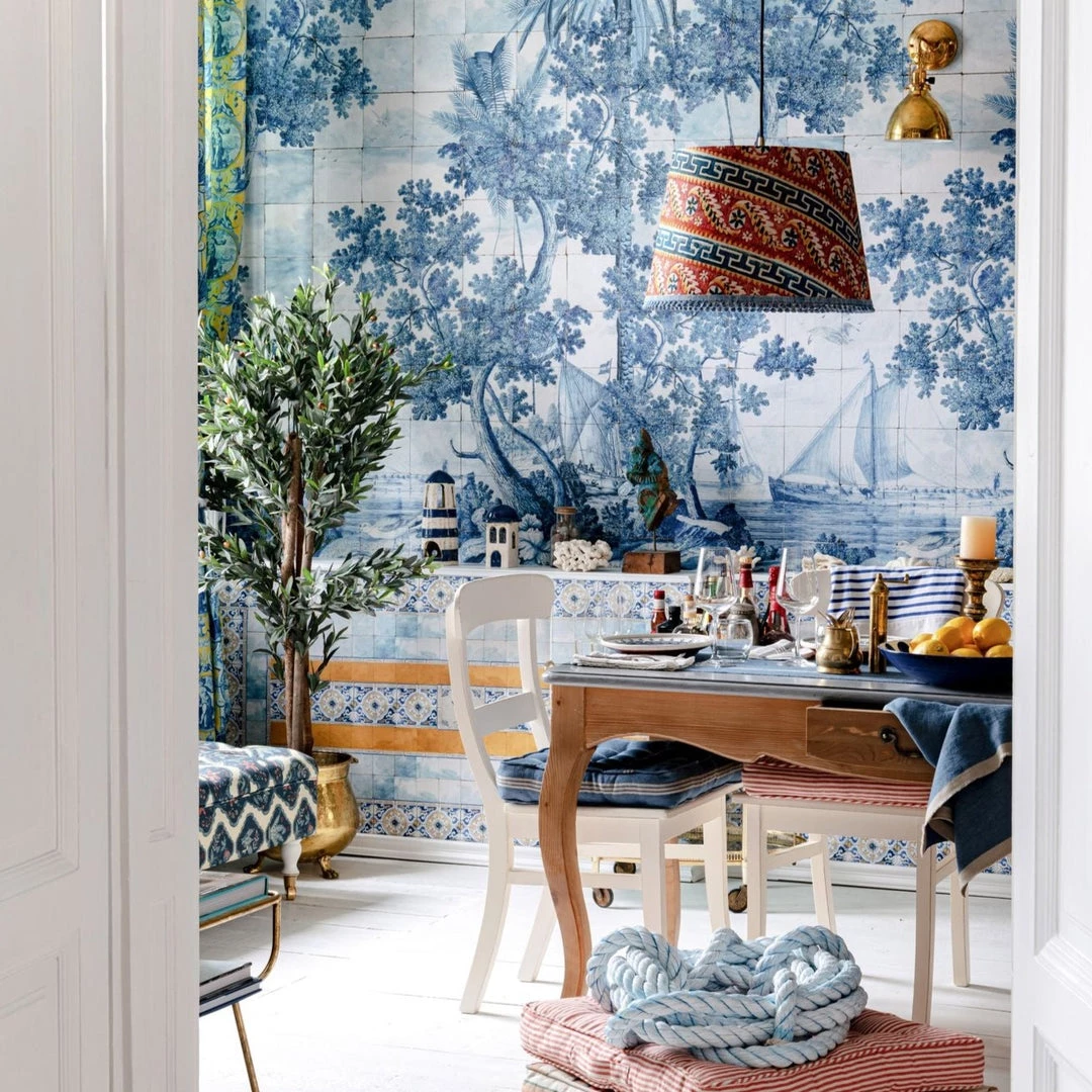 Surround yourself with the mesmerising Azure Mural wallpaper from Mind The Gap. Make your home feel like a gorgeous Greek holiday and decorate your walls with bright blue, beautifully detailed handmade tiles depicting a scenic view of the Mediterranean coast. A perfect statement that will bring sunshine and colour to any home. Easy to put up with the paste the wall application and will add a bit of quirk to any room whether it is one wall or all. This wallpaper is digitally printed using eco-friendly inks. Printed across three rolls to maximise the pattern repeat.