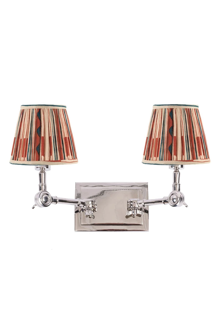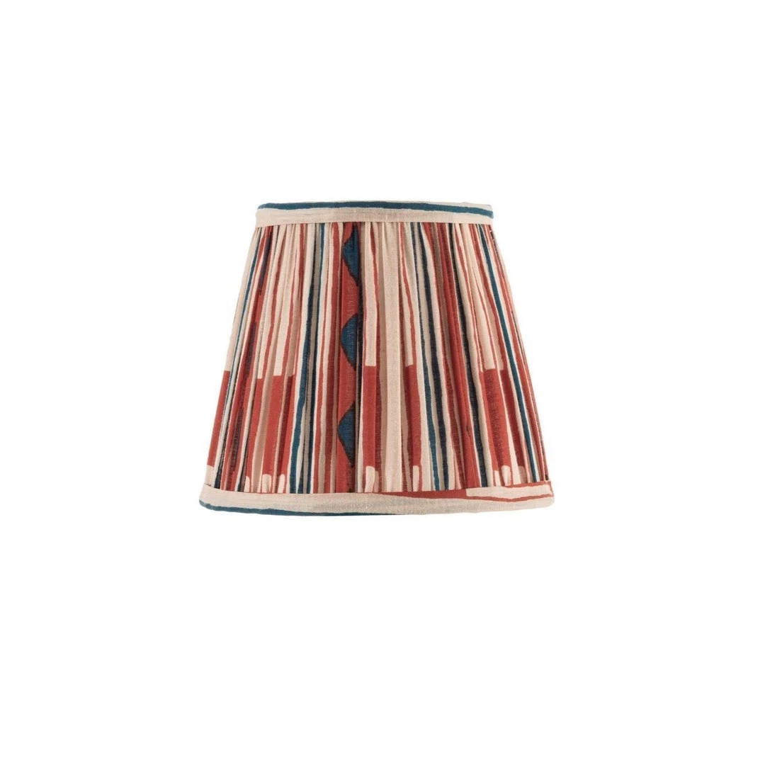 Fascinating lines and geometrical shapes, painted in earth tones, give the BHAUMIKITA pleated lampshade the authentic retro look of the ‘70s. Invite the Woodstock festival’s true feel into your home as the soft colours of this lovely pattern dance under the lights. Made from block printed cotton, the premium shade comes with a white lining, made from pure plain linen fabric.Â