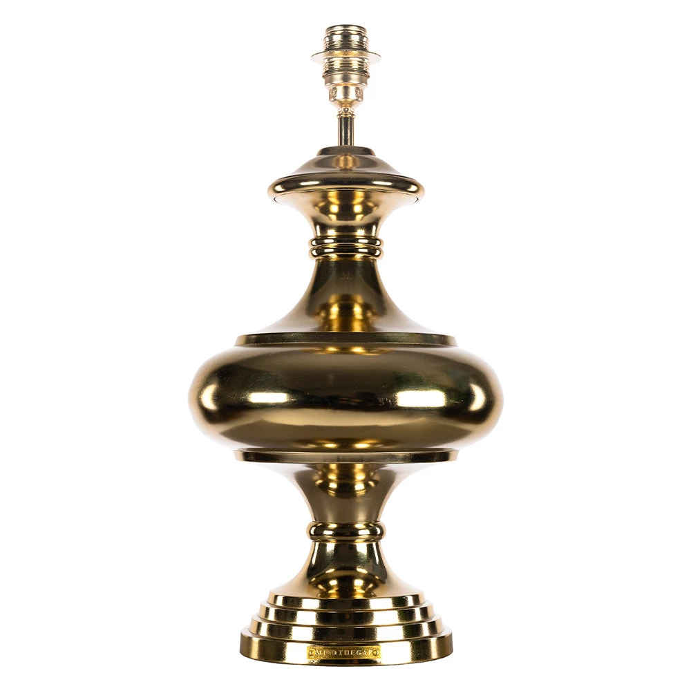 A Hindu urn shaped lamp base made of sand cast Aluminium and finished in brass. Metal hardware. Comes with E27 metallic lamp holder and black braided cable.