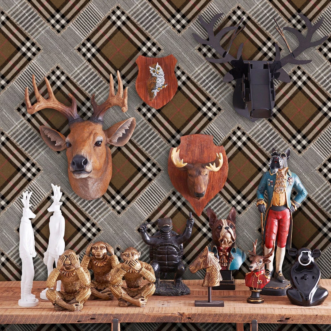Surround yourself with the Checkered Patchwork Brown wallpaper from Mind The Gap. This sophisticated tartan inspired wallpaper design will make an intriguing statement for any country home. Easy to put up with the paste the wall application and will add a bit of quirk to any room whether it is one wall or all. This wallpaper is digitally printed using eco-friendly inks. Available in both green and brown.Â