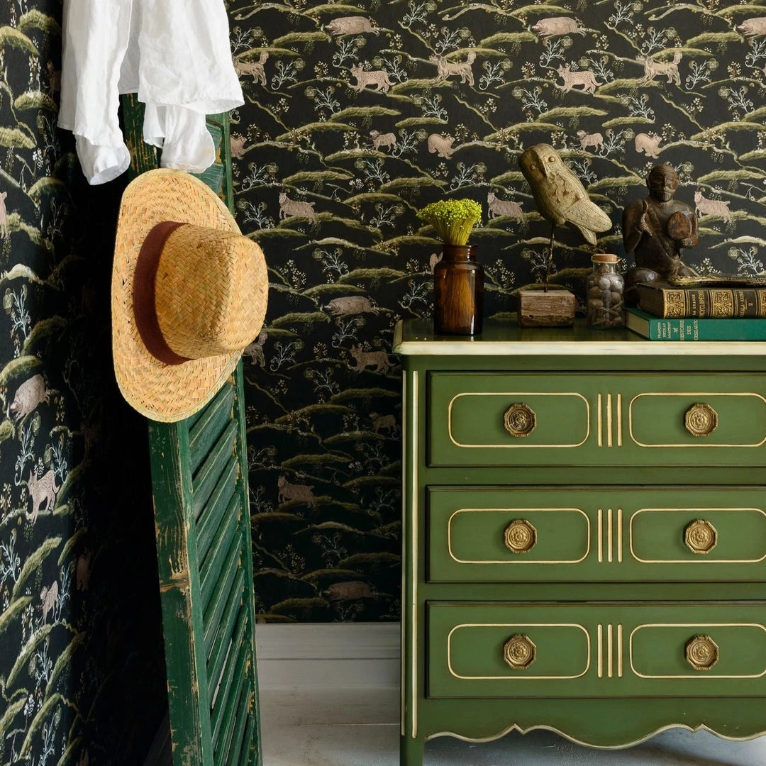Countryside is a homage to all life bestowed upon our prosperous lands. A naïve Folk illustration of wild and domestic animals inspired by local culture. Folk Couture at it’s finest. Easy to put up with the paste the wall application and will add a bit of quirk to any room whether it is one wall or all. This wallpaper is digitally printed using eco-friendly inks. Available in two tones: Day or NightÂ