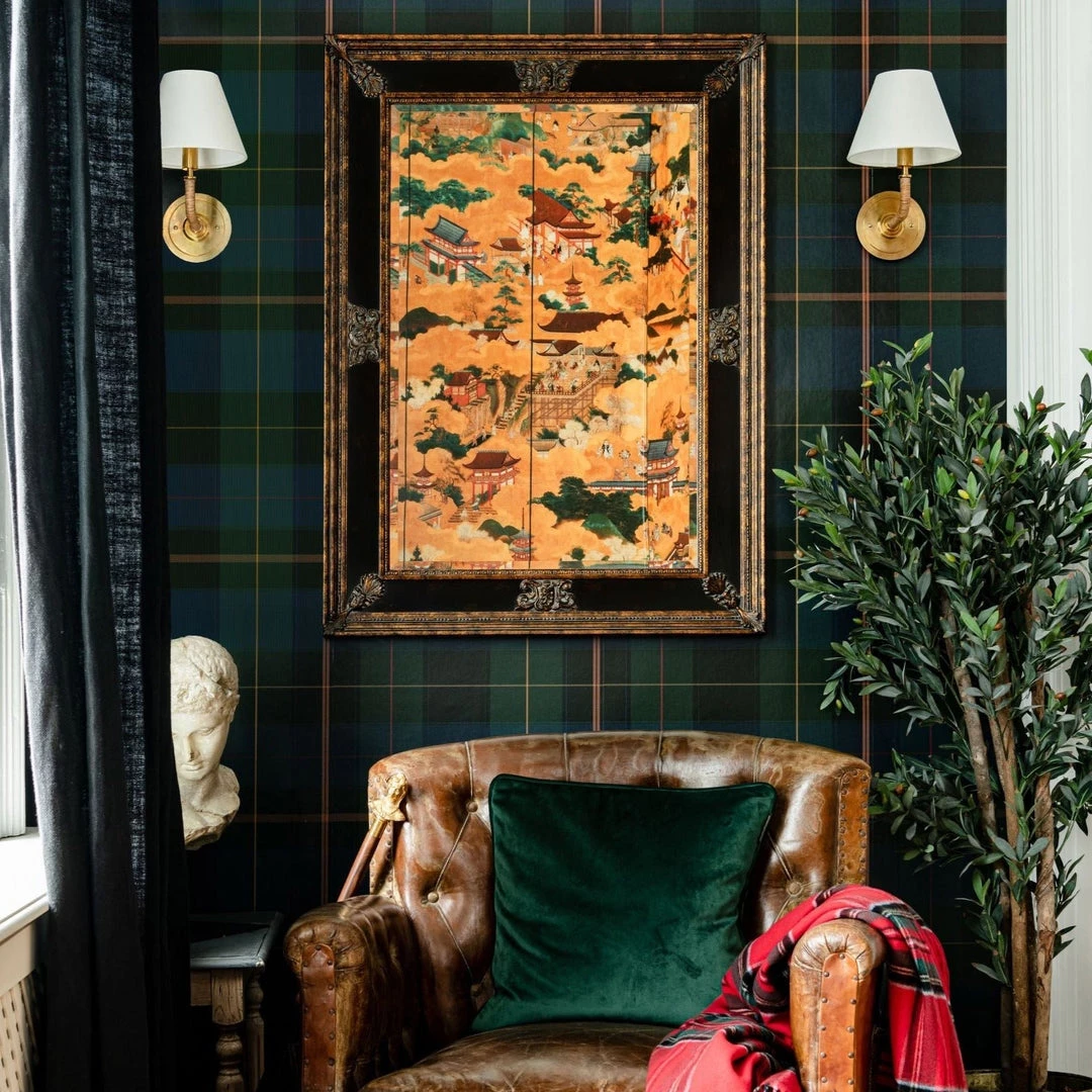 Surround yourself with the rich Equestrian Plaid wallpaper from Mind The Gap. A take on the iconic Scottish tartan, usually woven with wool, this design will bring added texture and depth to any home. Available in khaki, green and burgundy. Easy to put up with the paste the wall application and will add a bit of quirk to any room whether it is one wall or all. This wallpaper is digitally printed using eco-friendly inks.Â