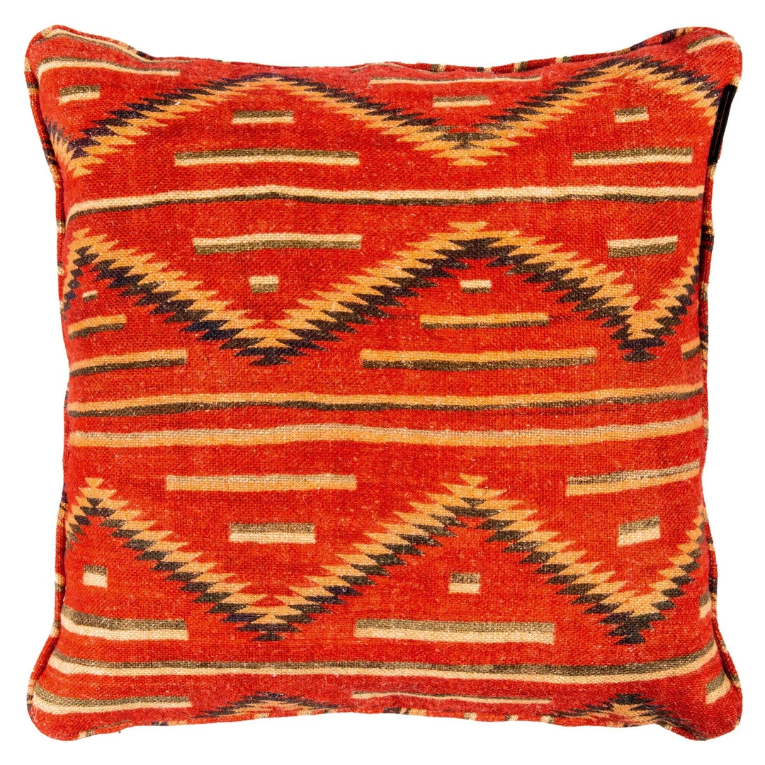 Inspired by an original woven carpet pattern made by the Navajo people. A homage to the traditions and rich culture of one of the largest tribes on the North America Indians. Perfect for the modern farmhouse look. Rich in reds and jewel tones, finished with assorted piping and 100% duck feather filling.