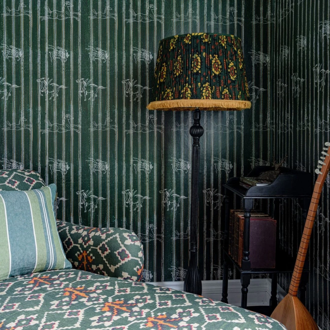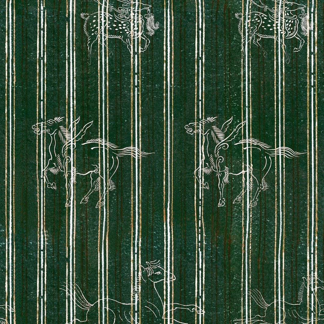 With subtle but intricate details of mystical creatures, A Fable wallpaper tells the story of local legends from once upon a time. Folk Couture at it’s finest. Available in the colourways Alabaster, Evergreen and Indigo.
