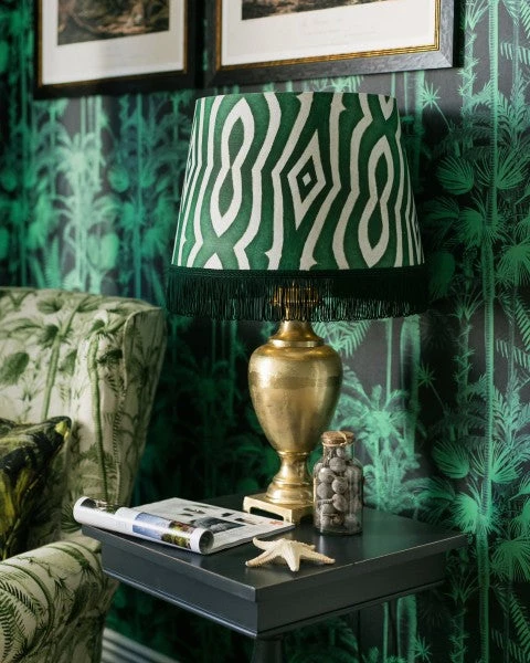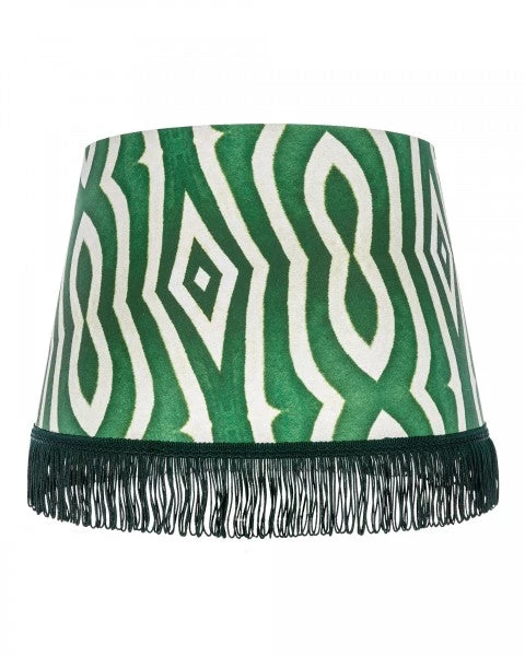 Premium drum and cone fabric lampshades decorated with digitally printed, eco-friendly inks. Shades are reinforced with hidden metallic frames and lined with luxurious metallic lining. To be used only with lamp bases.