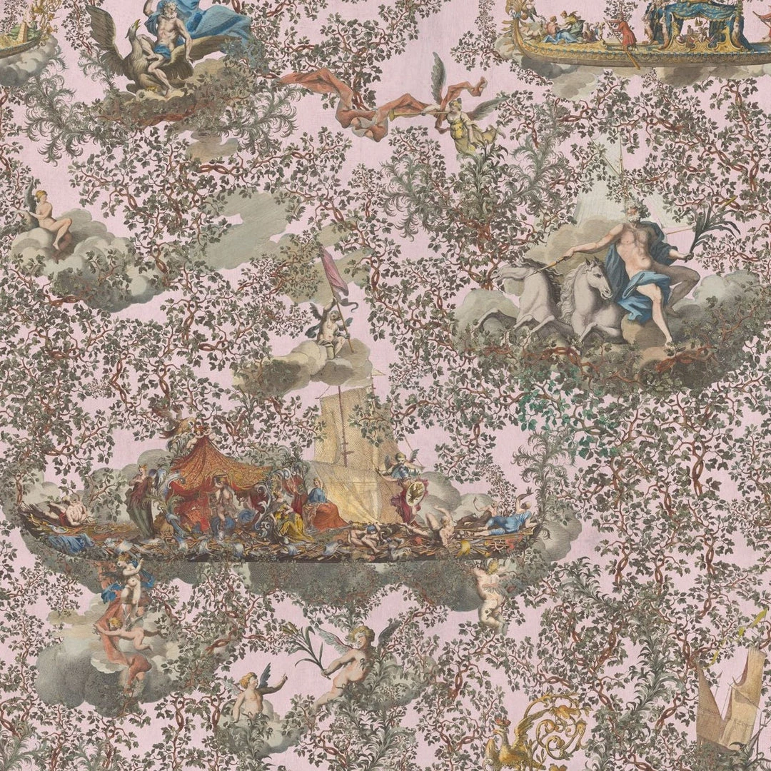 Adorn your walls with the Journey to Eden wallpaper from Mind The Gap. This Renaissance-style wallpaper is inspired by the engravings of angels and Gods by German Artist Johann Georg Wolfgang in the 1700s. The perfect wallpaper for adding depth and intrigue into any room. Easy to put up with the paste the wall application and will enhance any room whether it is one wall or all. This wallpaper is digitally printed using eco-friendly inks. Printed over three rolls to maximise the pattern repeat. Available in both pink and dark. Also available in a blue linen.Â