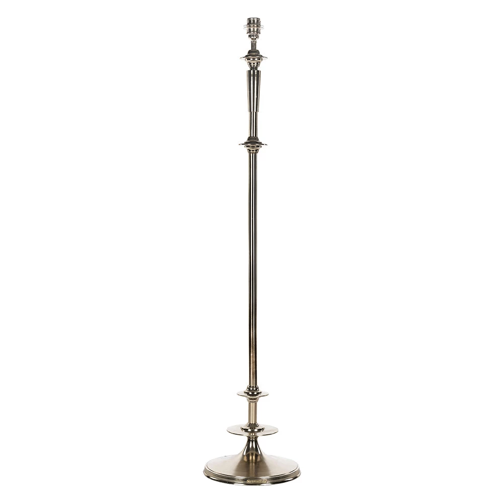 A sleek metal floor lamp base with a slender stand and four decorative discs. A polished Silver finish. Comes with E27 metallic lamp holder and black braided cable.