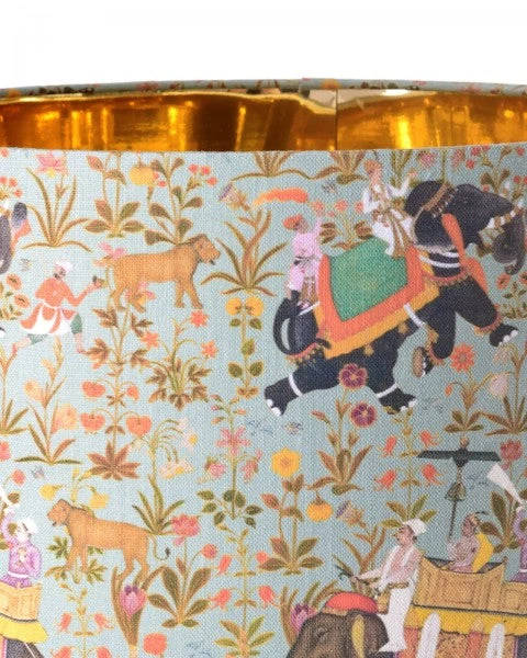 Premium drum and cone fabric lampshades decorated with digitally printed, eco-friendly inks. Shades are reinforced with hidden metallic frames and lined with luxurious metallic lining. To be used only with lamp bases.