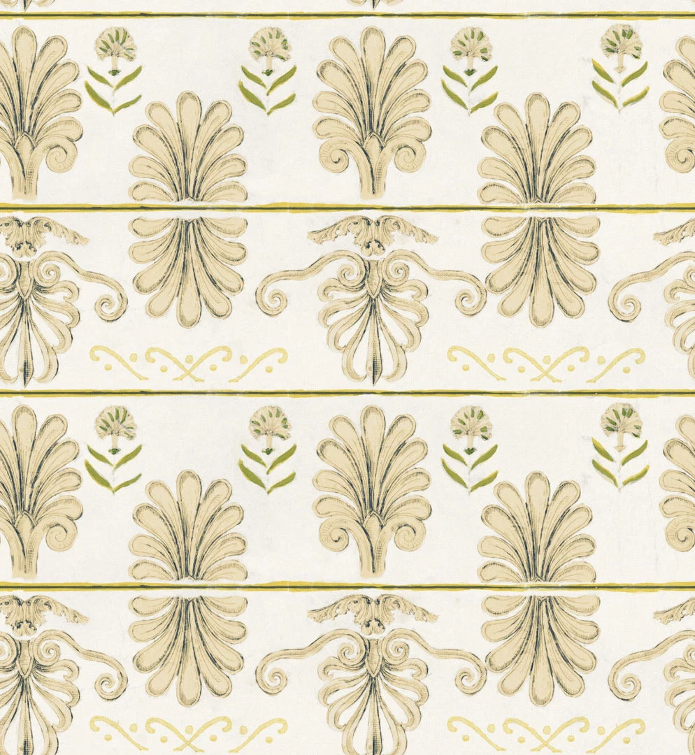 Fine ornaments showing decorative algae are highlighted in this delicate embellished pattern, creating a luxurious decorative wallpaper. Feel the warmth of a hot summer’s day wrapped within the walls of a splendid holiday villa. This complementary design is available in Island Green, Azure, Taupe, White Sand and Lemon.