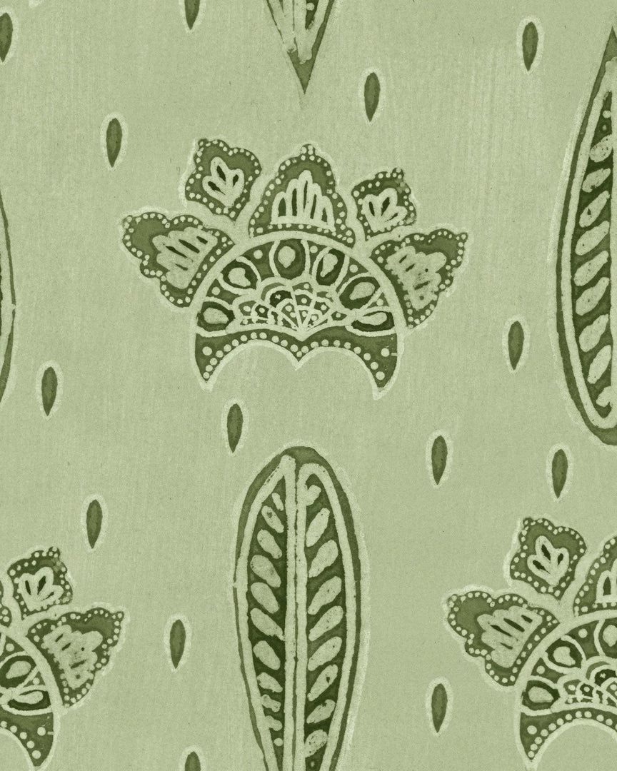 Dance through the tropical jungle to the beat of Javanese gongs and make a soundtrack from the rhythm of the rustling palms with BETHEL BATIK, a pattern showcasing the ancient Indonesian art of drawing and dying with hot wax. Decorated with traditional pod shapes and intricate crowns surrounded by delicate droplets, the gentle Antique White background brings the crafted nature of the unique forms into focus, its subtle shapes creating a calming neutral.