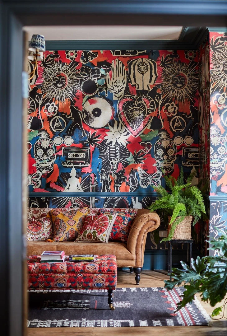 For festival lovers across the world, who love the community such events bring and the sense of belonging in a specific place and time. Fill the room with memories where no rules or systemic restraints belong. A moment where you are at one with the music, at one with the world and at one with yourself. Peace and happiness overcome you as you’re immersed in the melodies as the sun sets, feeling full of love as people dance around you. Your eye is drawn to intricate details across this FESTIVAL MEMORIES wallpaper, designed with both light and dark backgrounds encouraging you to party all through the day and night.
