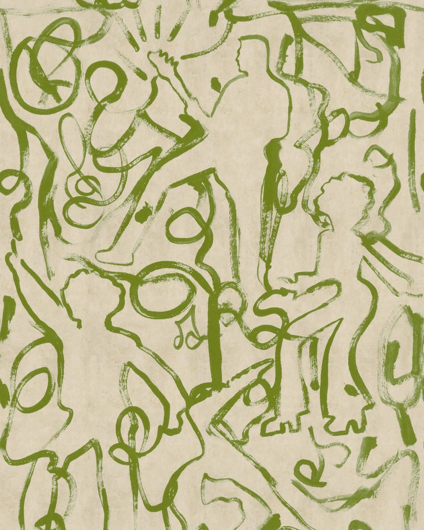 Channelling the vivacious energy of a crowd-pleasing musical performance, our ON THE STAGE wallpaper is a linear exploration of a raucous night with the band of the moment. A single line charts the twists and turns of an electric evening, echoing the sounds of strumming and singing; the clarity of the paint fading in and out to mirror the music with the vivid Greenery palette uplifting and adding energy to its neutral cream background.
