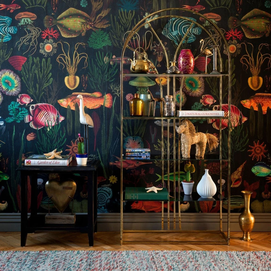 Swim with shoals of fish and immerse yourself in the depths of the sea with the vibrant and beautifully illustrated Oceania wallpaper from Mind The Gap. A dramatic and rich statement for any home.  Easy to put up with the paste the wall application and will enhance any room whether it is one wall or all. This wallpaper is digitally printed using eco-friendly inks. Printed over three rolls to maximise the repeat patterns and creating a flowing under-the-sea feature.Â