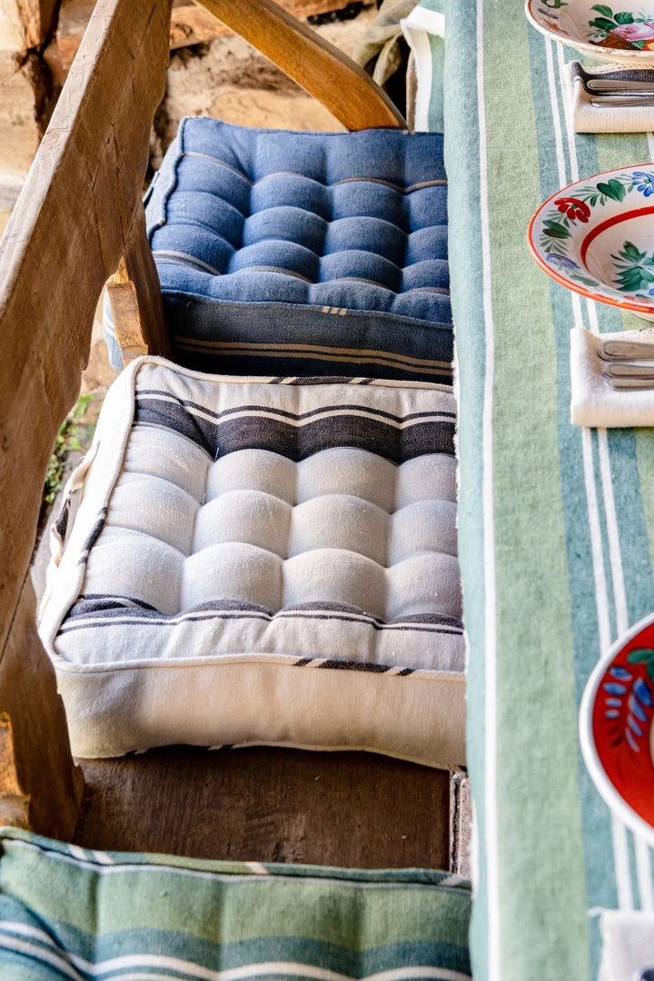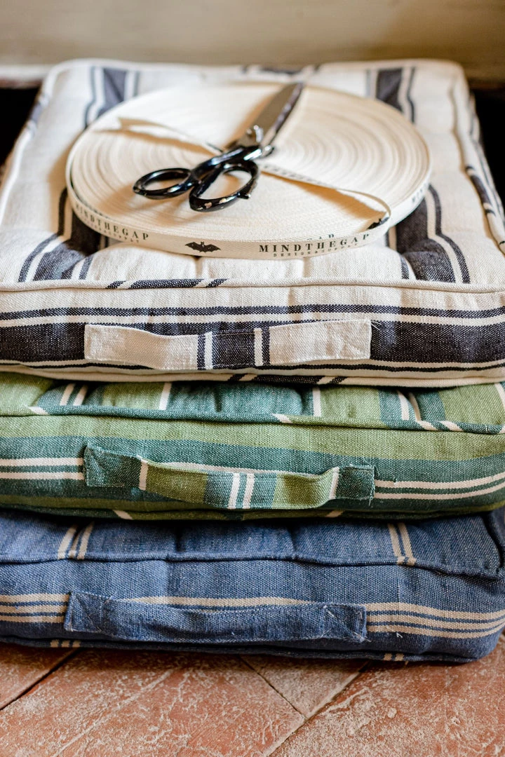 Revamp your chairs with our collection of padded chair cushions. Hand sewn and finished with a self fabric piped edge and linen handle. Filled with thick poly foam insert and polyester cove for a long lasting shape.Â