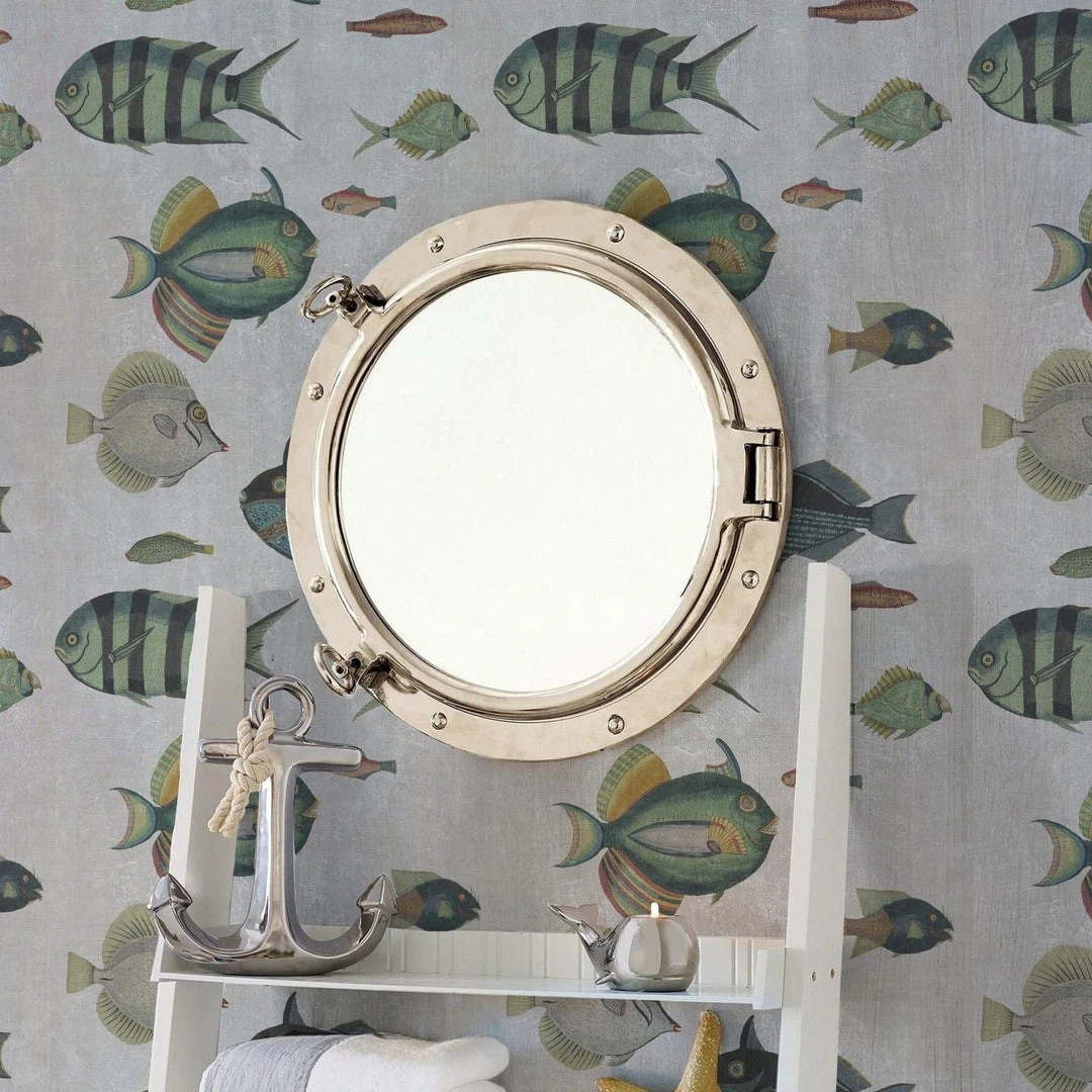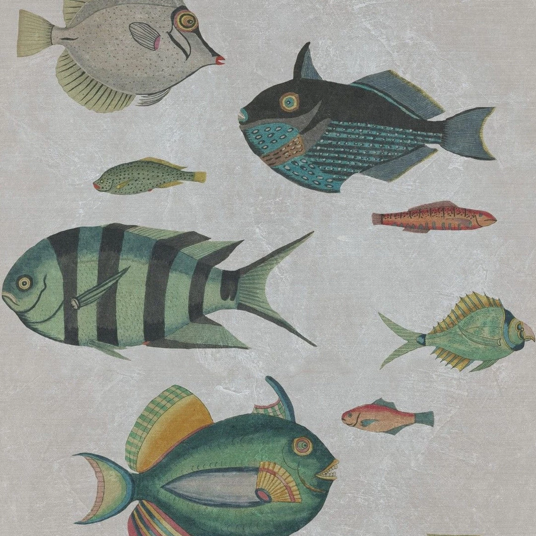 Perfect for a house next to the sea, find yourself swimming with the fish in the Poissons Grey wallpaper from Mind The Gap. These unique fish are illustrated beautifully, down to each scale. The ideal wallpaper to make a statement in any room. Easy to put up with the paste the wall application and will enhance any room whether it is one wall or all. Also available in Green.Â