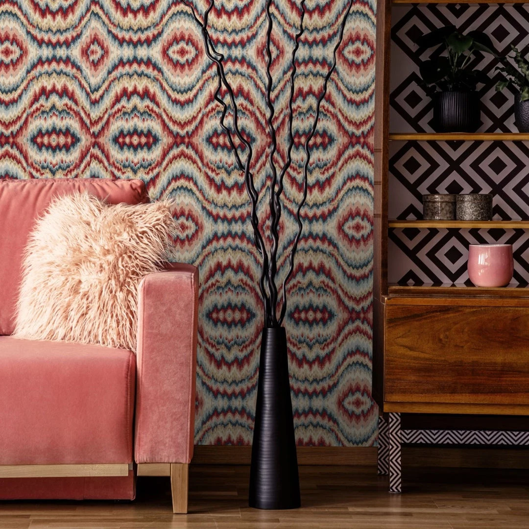 Surround yourself with the energising Psychedelic wallpaper from Mind The Gap. Inspired by the concept of colours vibrating together, this design brings vibrancy and energy to any space. This wallpaper will be sure to make an impressive feature on any wall. Easy to put up with the paste the wall application and will add a bit of quirk to any room whether it is one wall or all. This wallpaper is digitally printed using eco-friendly inks.Â