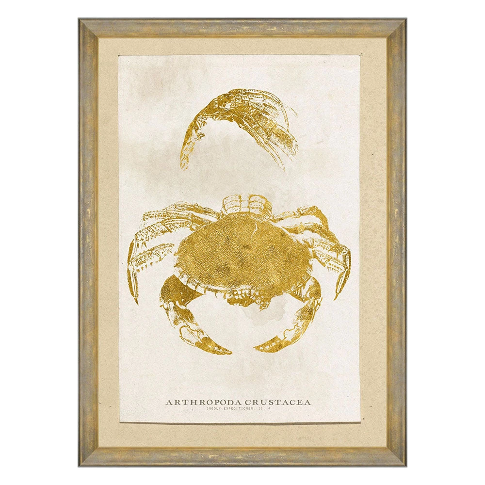 Arthropoda Crustacea, from a series of six framed art prints of Pacific creatures and corals. Illustrated and enhanced using gold foil, each print is then hand finished for a vintage look and applied on top of the mount board. Finished with an Artisan antique opal frame.  Â