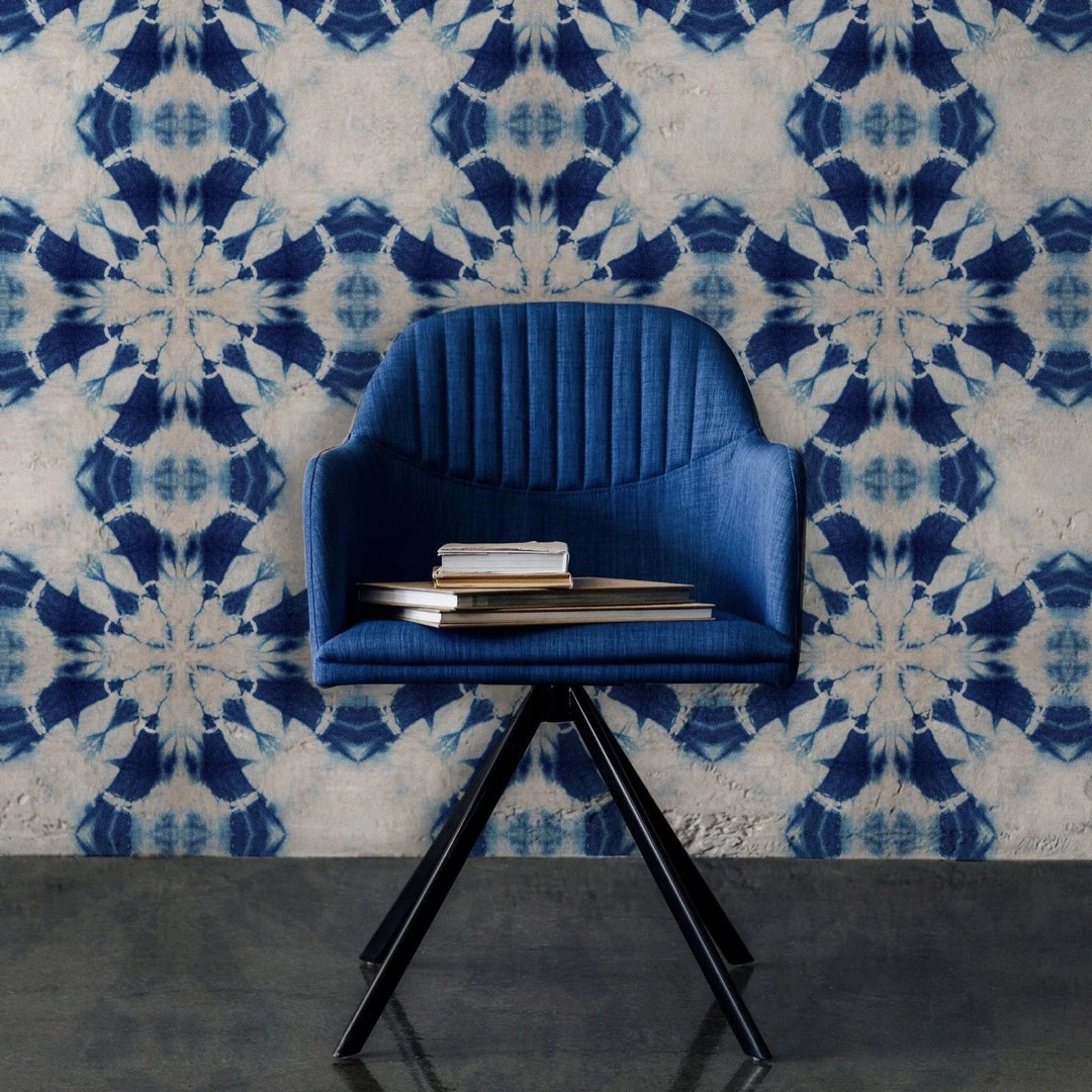 Turn heads with the vibrant indigo Shibori Flower wallpaper from Mind The Gap. A Japanese technique creating a tie-dye effect resulting in the perfect statement wallpaper for any room. Easy to put up with the paste the wall application and will enhance any room whether it is one wall or all.Â