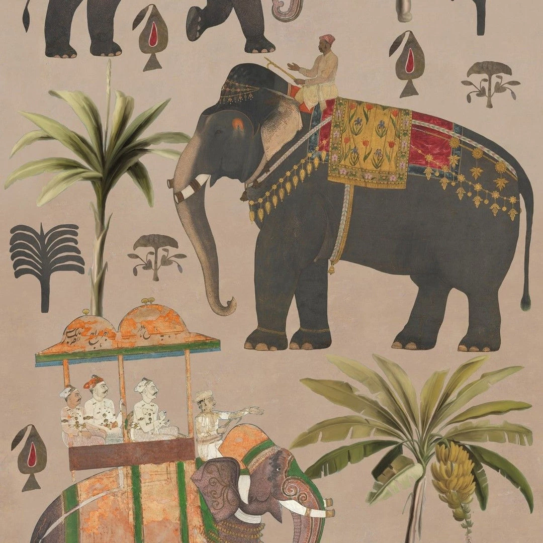 Find yourself in India, travelling on elephants with Mind The Gap’s The Procession wallpaper. Inspired by the rich culture of India, this wallpaper depicts a range of cultural symbols on a deep blue background. It is easy to put up with the paste the wall application and will enhance any room whether it is one wall or all. Also available in Taupe.Â