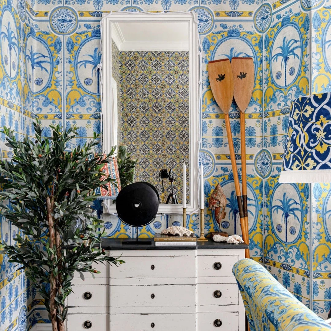 Adorn your walls with the vibrant Villa wallpaper from Mind The Gap. Inspired by marvellous Greek villas, this delightful design will make an impactful feature in any home. Featuring beautifully illustrated Hellenic ornaments and motifs. Available in sunny yellow or deep sunset red. Easy to put up with the paste the wall application and will add a bit of quirk to any room whether it is one wall or all. This wallpaper is digitally printed using eco-friendly inks. Printed across three rolls to maximise the pattern repeat.Â