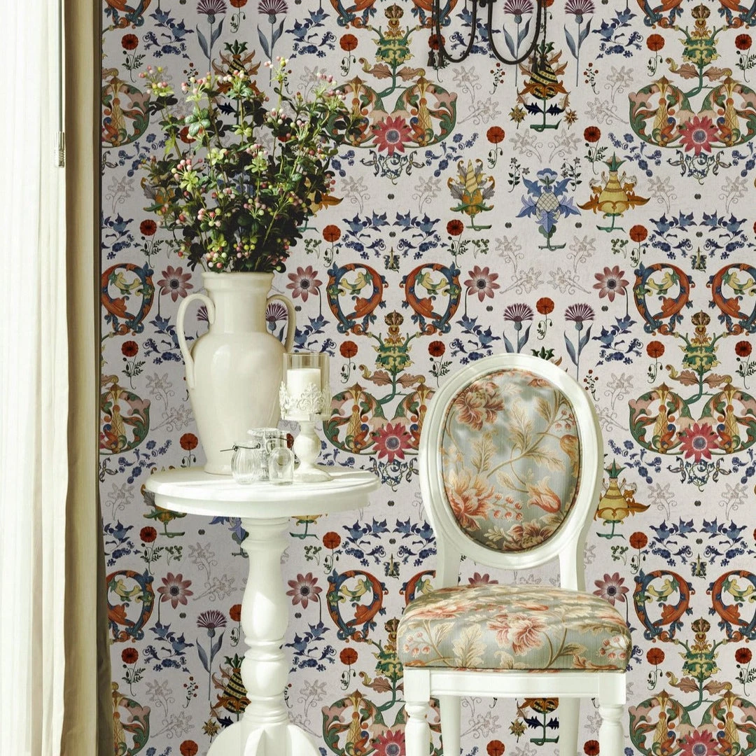 Decorate your walls with the Transylvania Folk wallpaper from Mind The Gap. Surround yourself with rich and intricate florals on a light background. Inspired by Transylvanian folk and culture, this wallpaper will create the perfect statement for any home. Easy to put up with the paste the wall application and will enhance any room whether it is one wall or all. This wallpaper is digitally printed using eco-friendly inks. Available in both blue and white.Â