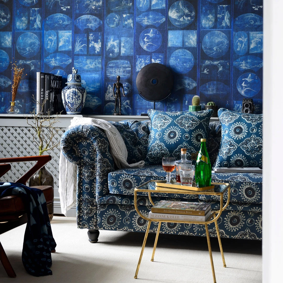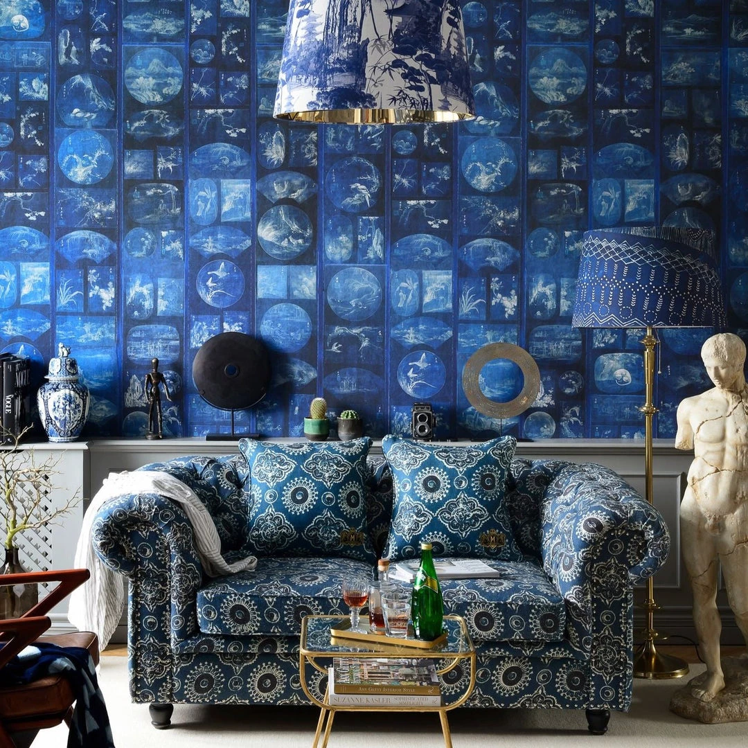 Adorn your walls with the beautiful Aizome Collage wallpaper from Mind The Gap. Inspired by ancient Japanese hand paintings and indigo dyeing, this wallpaper would make an impactful feature in any home. The perfect statement wallpaper to add depth and intrigue into any room. Easy to put up with the paste the wall application and will enhance any room whether it is one wall or all. This wallpaper is digitally printed using eco-friendly inks. Printed across three rolls to create the maximum pattern repeat.