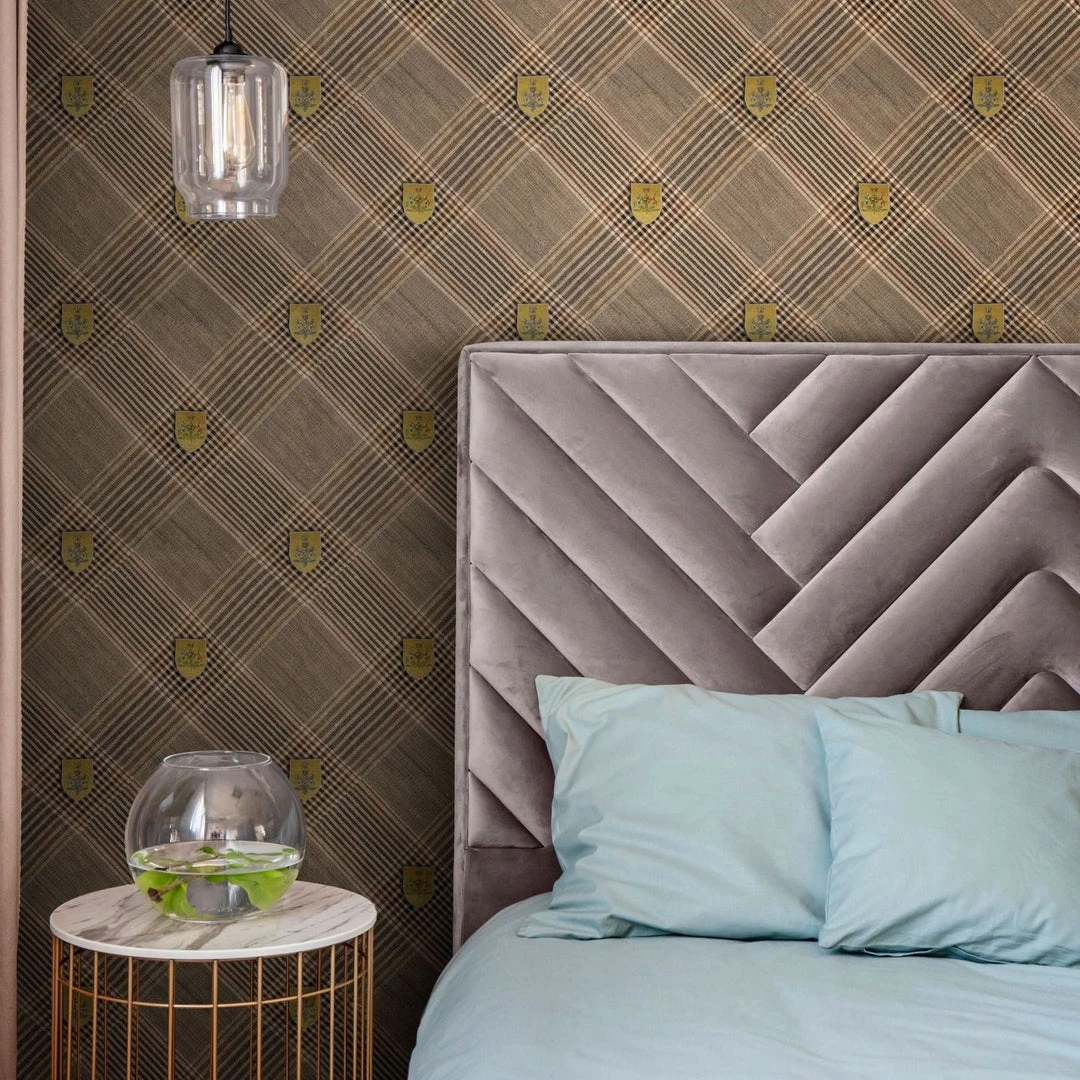 Surround yourself with the Nobility wallpaper from Mind The Gap. This tartan inspired wallpaper design will make an intriguing statement for any country home. Easy to put up with the paste the wall application and will add a bit of quirk to any room whether it is one wall or all. This wallpaper is digitally printed using eco-friendly inks. Available in both gold and grey.