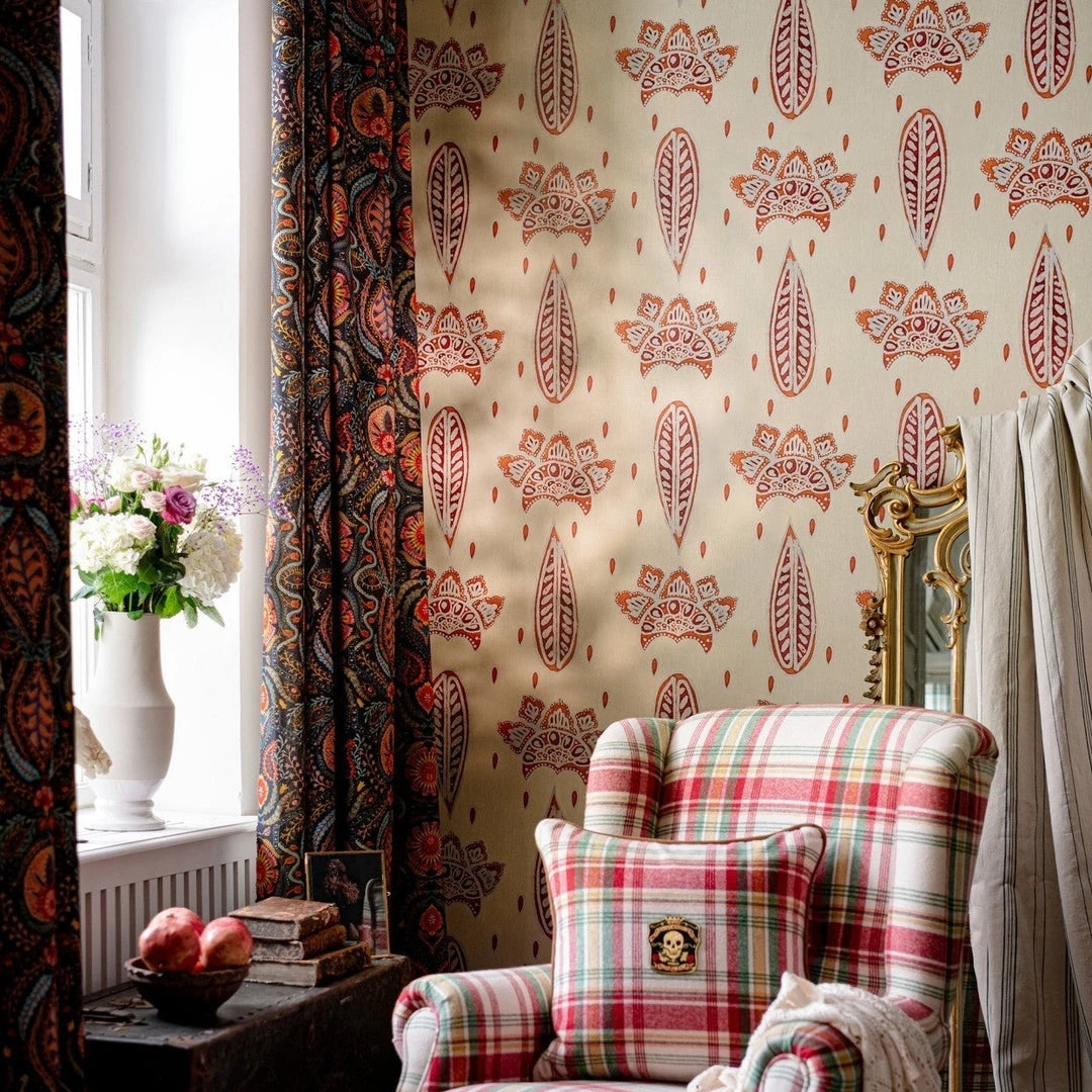 BETHEL BATIK was especially created to complement wallpapers from the free-spirited WOODSTOCK Designer collection and makes for a standalone statement piece too.
