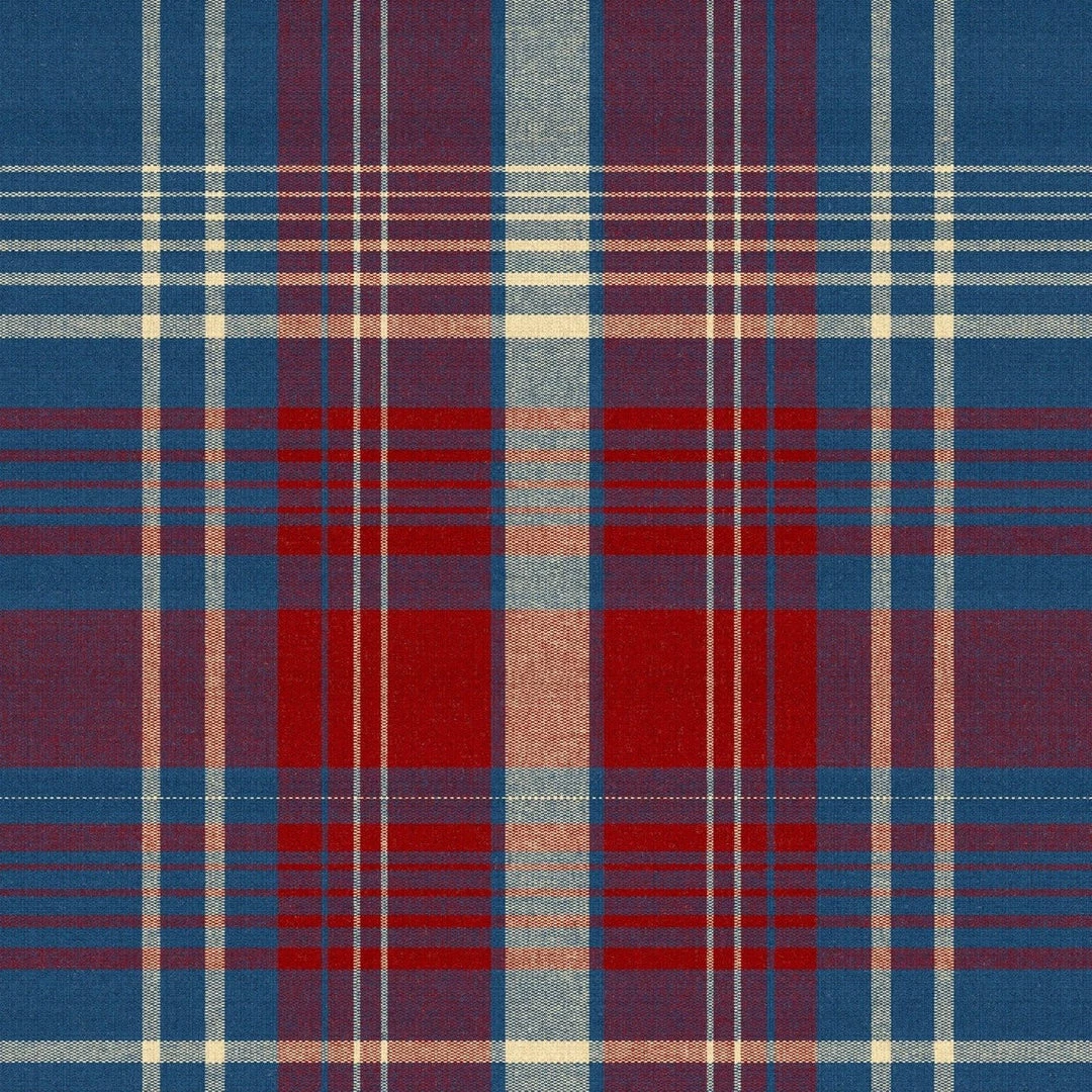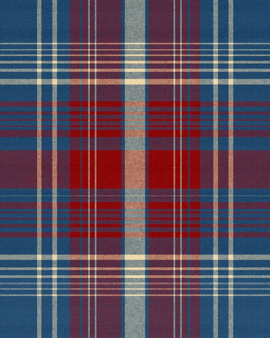 Channel the charming characteristics of traditionally woven cloth with our take on iconic tartan plaid. A simple yet personality-filled design composed of tonal stripes built up in layers, MONTEREY exhibits the depths of colour historically achieved when multiple threads are combined on a loom. The supersized nature of the checks simplifies and modernises the age-old pattern while flecks of white create the feel of a light fabric, the Sapphire palette artfully merging rich red and royal blue.