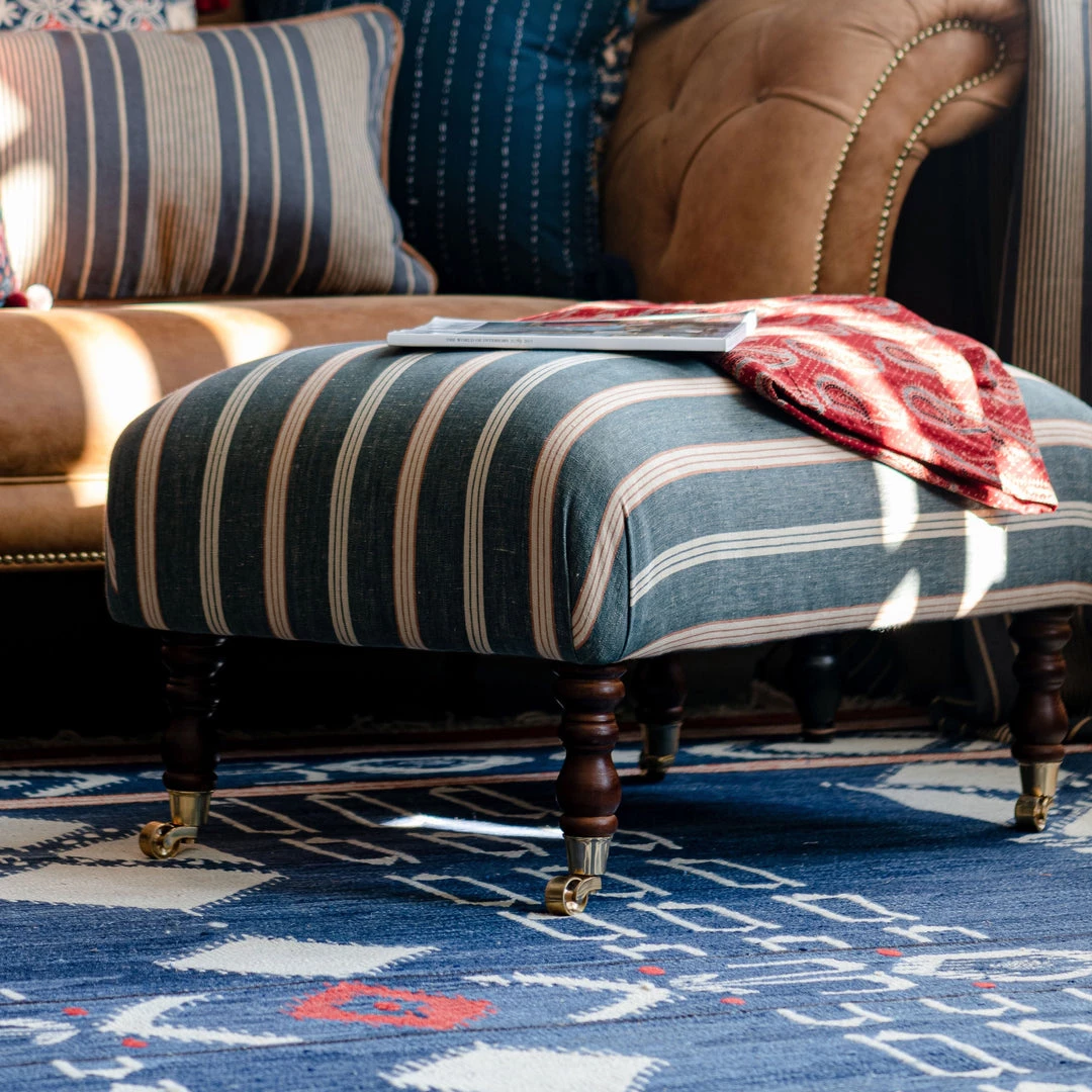 Referencing Vortex I, the rock festival held in Oregon in 1970, OREGON STRIPES WASHED BLUE has a colour palette which symbolises the stonewashed denim fashions of the era. The contrasting blue and orange lines are complemented with a neutral stripe bringing harmony to the shades as they add a rustic elegance to the interior.