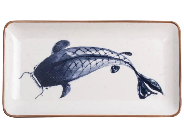 The prettiest serving dish with a decorative navy Koi print. Use for entertaining or keep for yourself to safeguard small items and treasures.