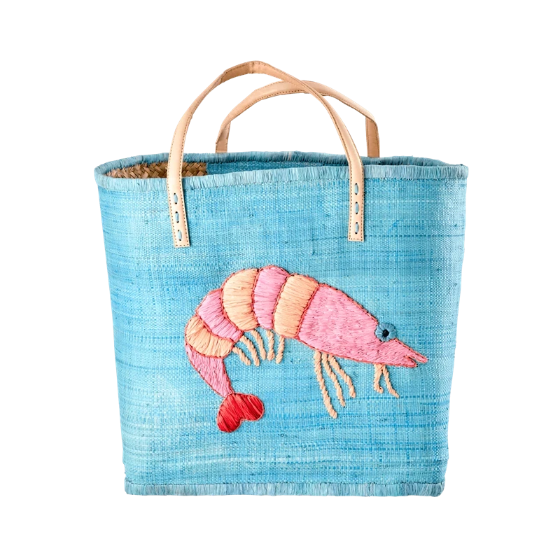 Gorgeous handmade raffia bag with an embroidered shrimp – large in size. The bag is spacious and fits many things… Can be used every day, picnics, on the beach, as a weekend bag or whatever the day has to offer. Perfect for a bottle ( or two ) of Rose .